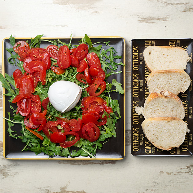 Rucola, datterini e burrata.