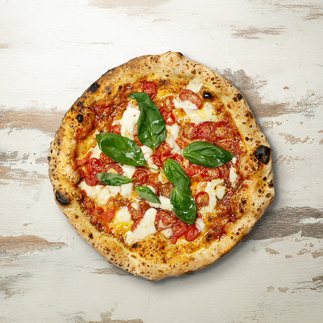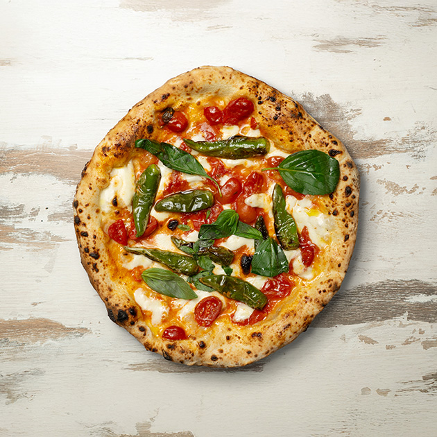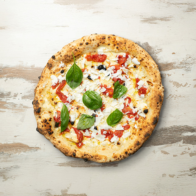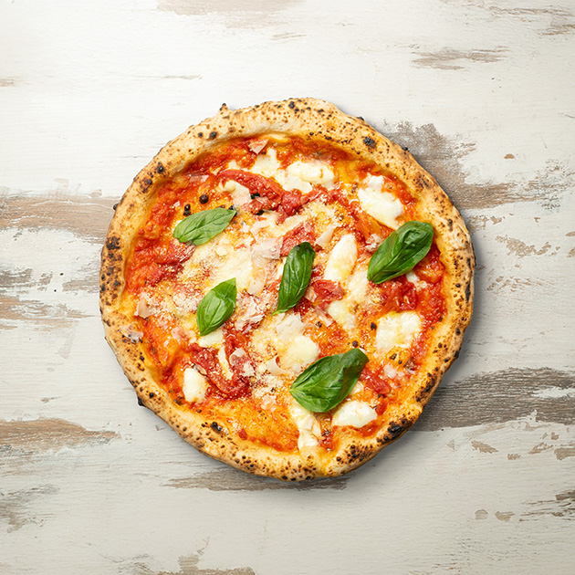 Pomodoro, provola, ricotta di bufala, salame, pepe.
