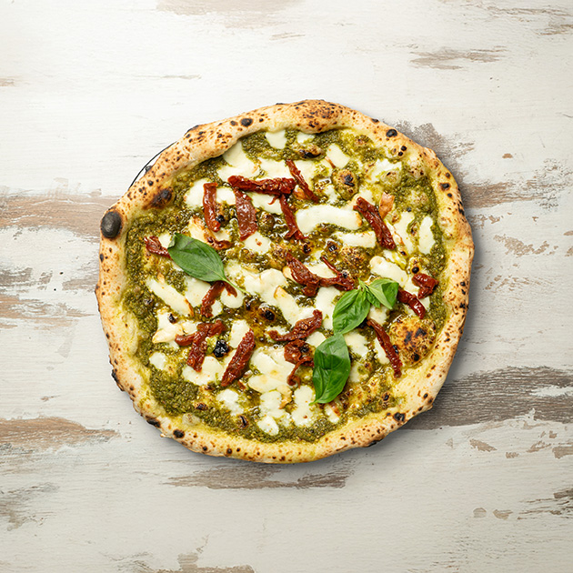 Provola, pomodori secchi, pesto di basilico.