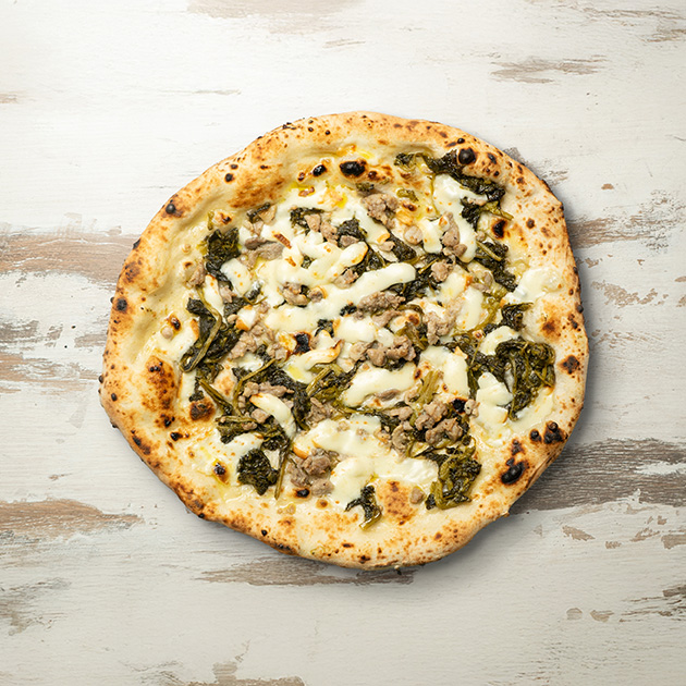 Friarielli, salsiccia in doppia cottura, provola.
